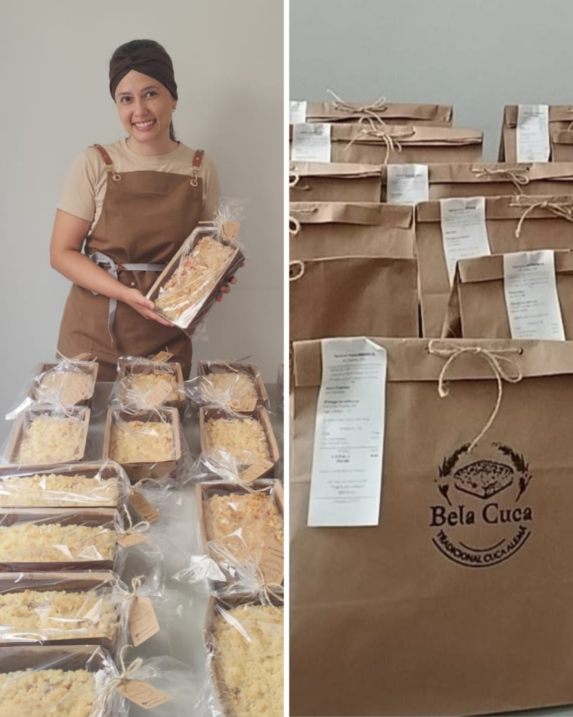 Seguiu o passo a passo do curso de cucas artesanais, começou na própria cozinha, sem equipamentos caros — só método e dedicação.